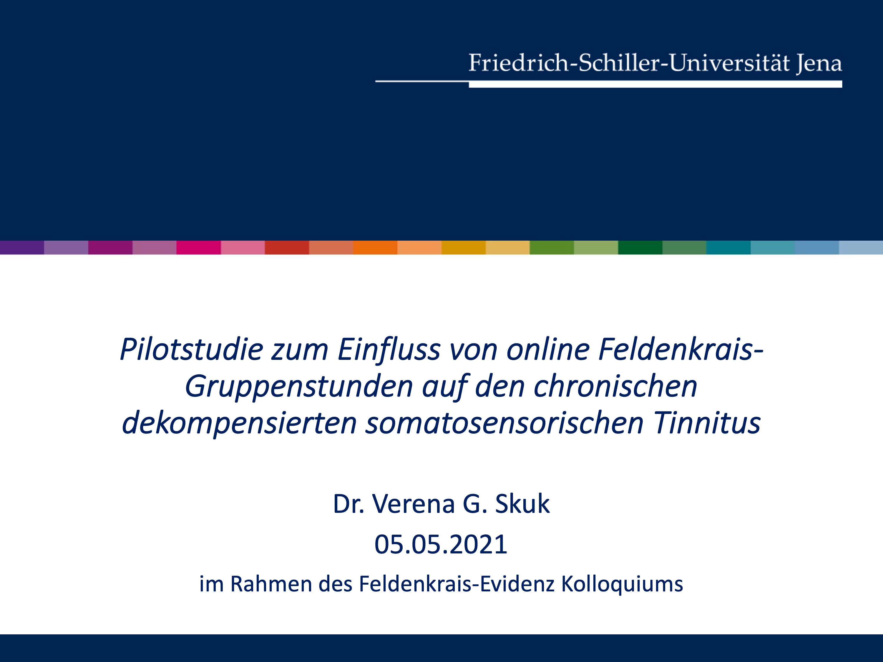Dr. Verena Skuk stellt ihr Forschungsvorhaben „The influence of FKM on somatosensory tinnitus - proposal of a pilot study with a waiting group design.“ im Evidenz-Kolloquium vor. Neben zahlreichen Impulsen aus der Diskussion nimmt sie auch die Zusage des Fördervereins mit, ihr Vorhaben finanziell zu unterstützen.